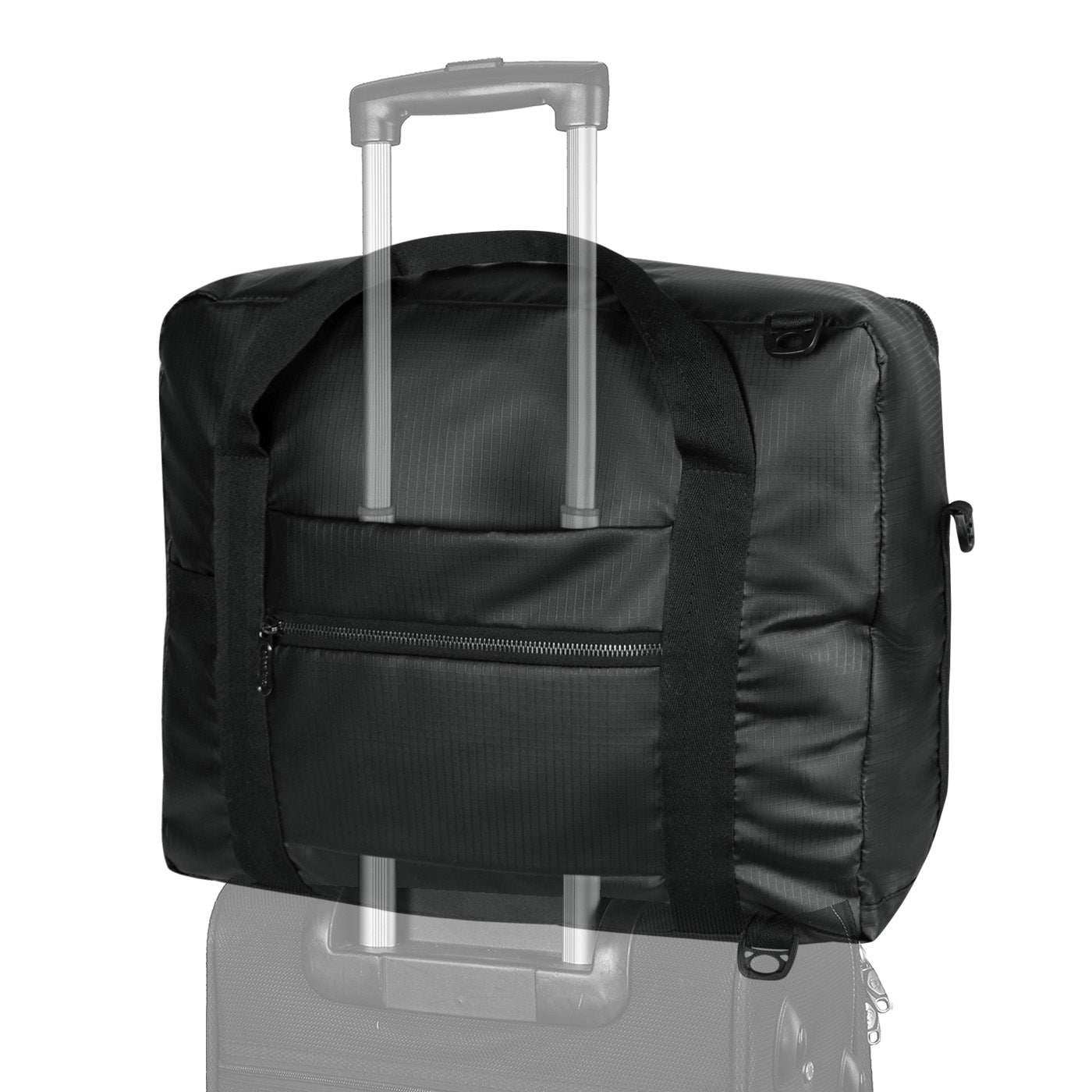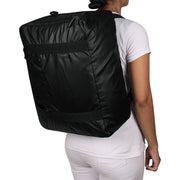Con medidas abierta de 43cm x 35cm x 19cm  tiene una capacidad de 28 litros y es fácil de doblar y guardar. Puedes colocarla en tu maleta de ruedas o llevarla al hombro. Úsala como equipaje de mano o como artículo personal en las aerolíneas low cost.