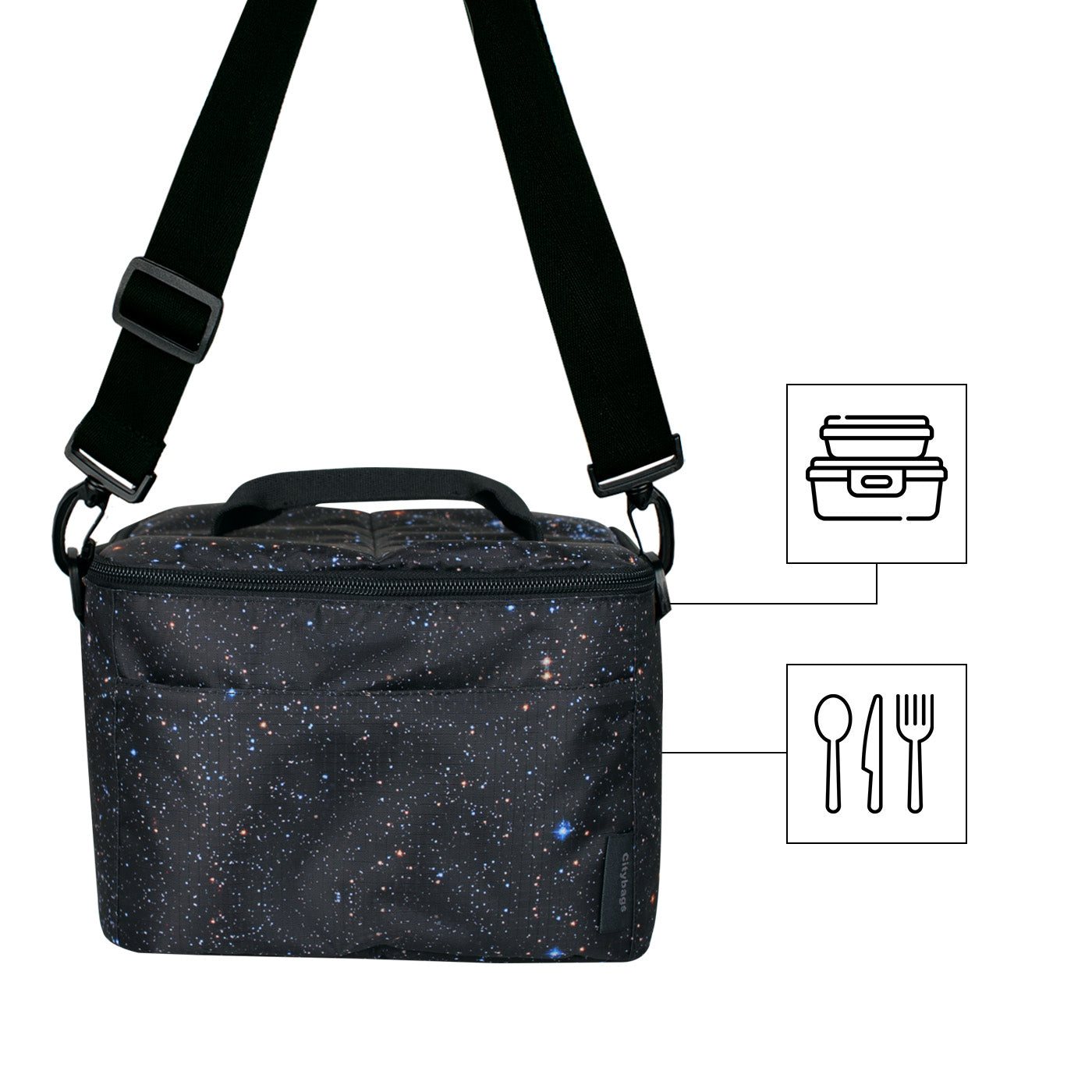Además, esta lonchera es conveniente y portátil. Cuenta con una agarradera reforzada en la parte superior y una correa de ajuste al hombro suave para garantizar un transporte cómodo. El diseño de apertura amplia hace que sea fácil llenar y tomar alimentos.