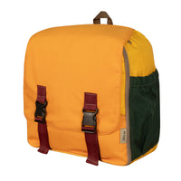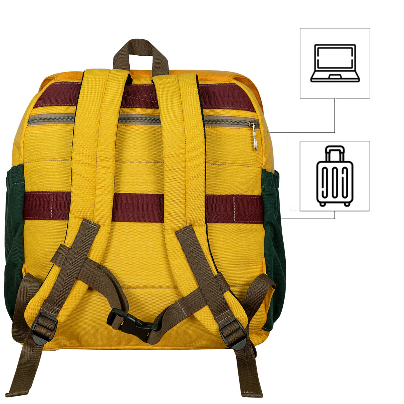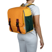 Este morral está hecho con tela 100% poliéster e insumos remanentes (sobrantes) de otras producciones, con costuras reforzadas para soportar el peso de lo que guardes en ella. Cuenta con muchos bolsillos, espuma en la espalda, bolsillo para laptop y está forrado para mayor resistencia y comodidad. Es resistente a la humedad y puede soportar hasta 12 kilos, lo que lo hace adecuado para cualquier situación de viaje.
