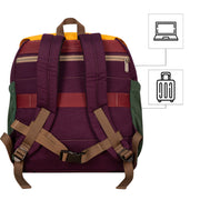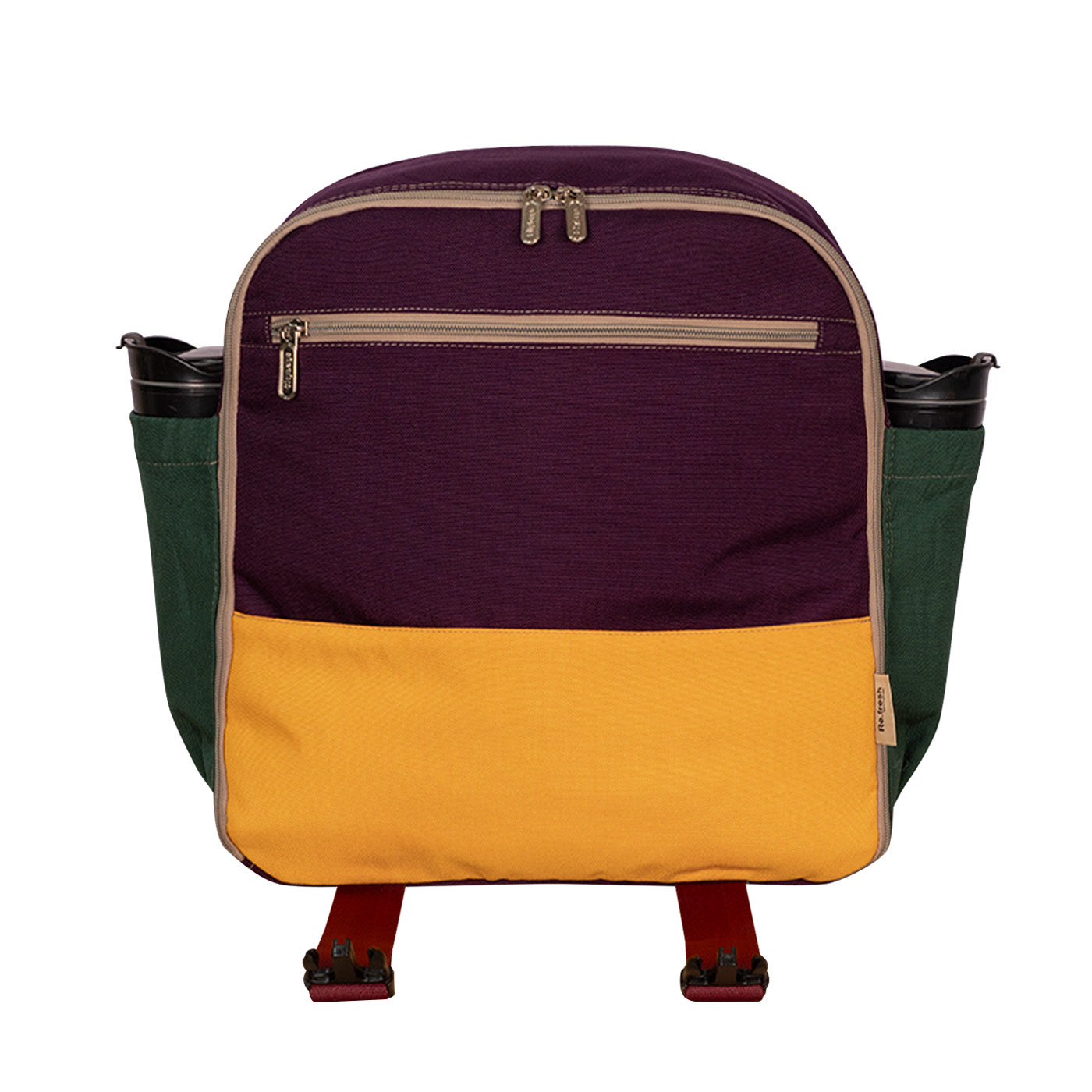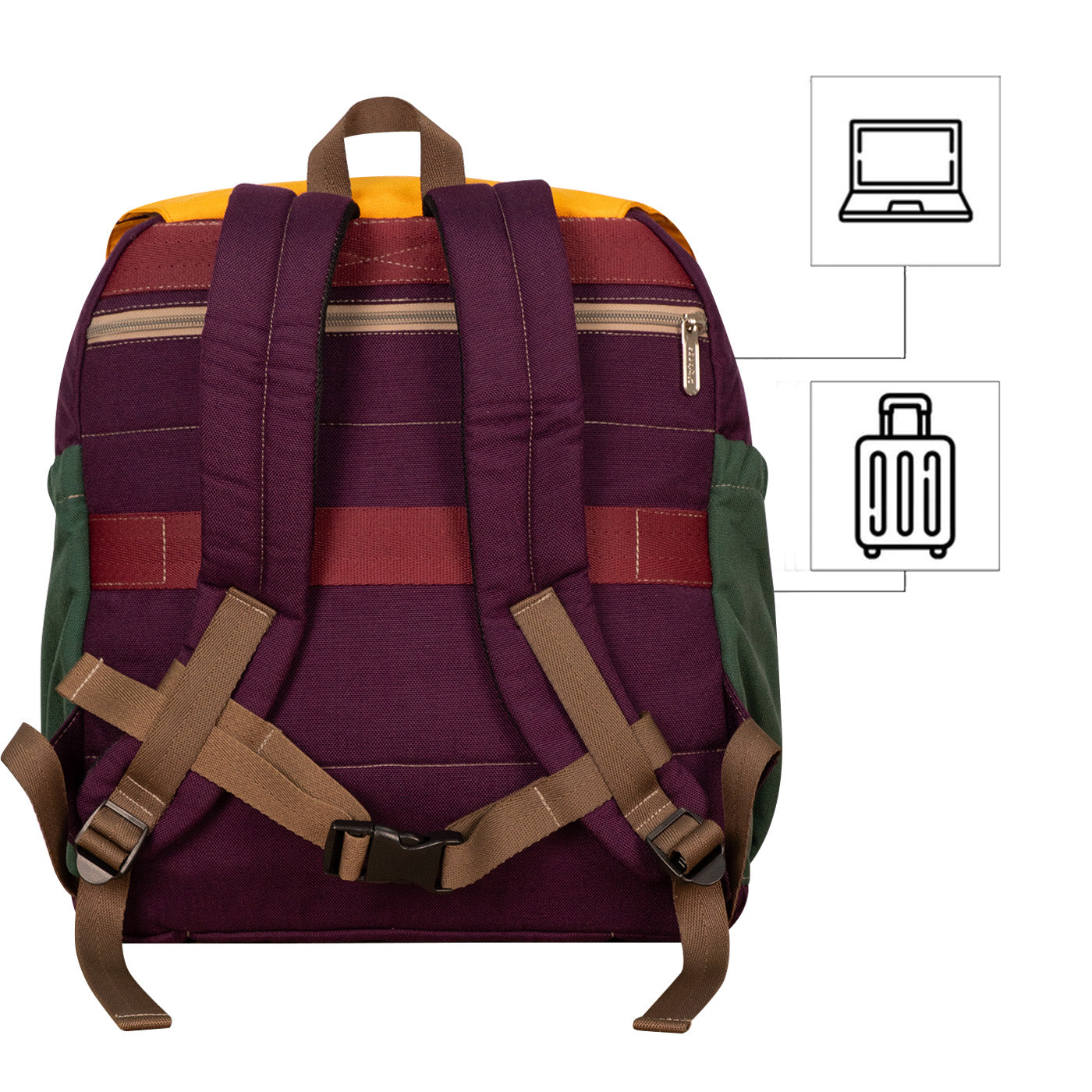Este morral está hecho con tela 100% poliéster e insumos remanentes (sobrantes) de otras producciones, con costuras reforzadas para soportar el peso de lo que guardes en ella. Cuenta con muchos bolsillos, espuma en la espalda, bolsillo para laptop y está forrado para mayor resistencia y comodidad. Es resistente a la humedad y puede soportar hasta 12 kilos, lo que lo hace adecuado para cualquier situación de viaje.