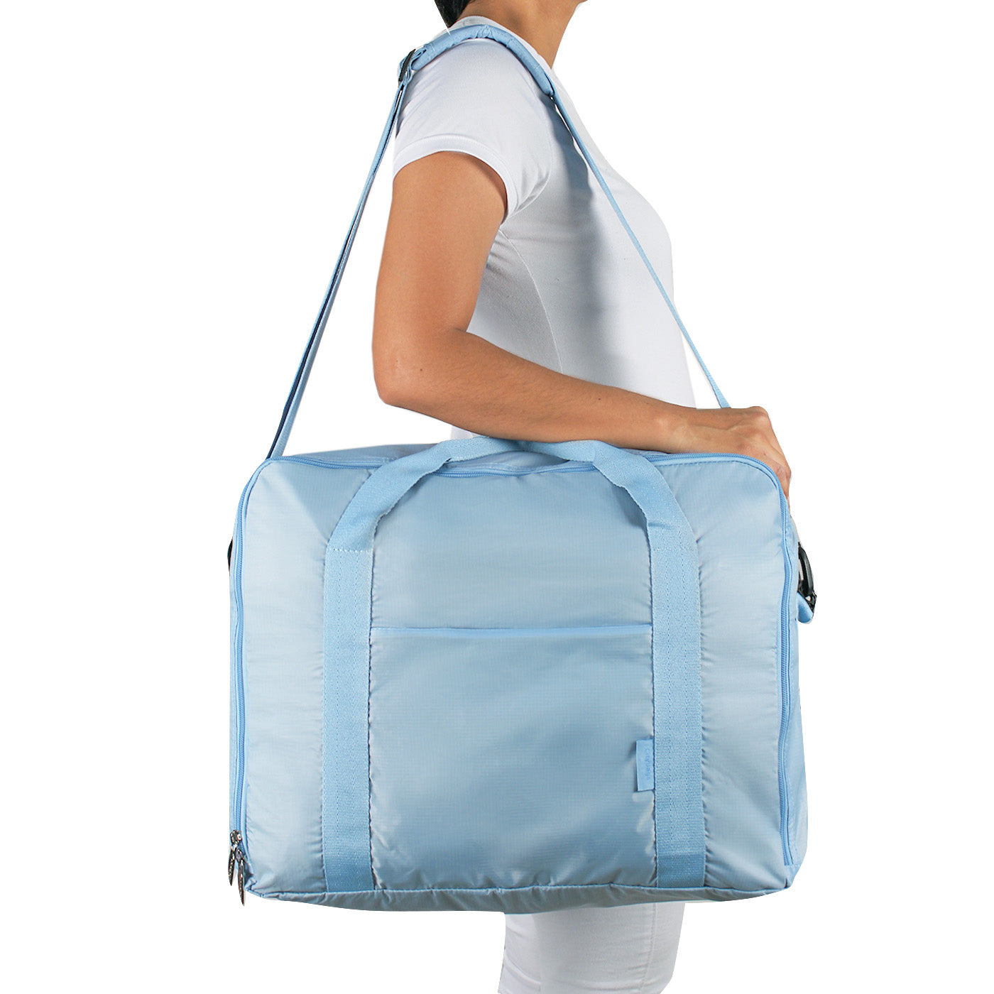 Con medidas abierta de 43cm x 35cm x 19cm tiene una capacidad de 28 litros y es fácil de doblar y guardar. Puedes colocarla en tu maleta de ruedas o llevarla al hombro. Úsala como equipaje de mano o como artículo personal en las aerolíneas low cost.