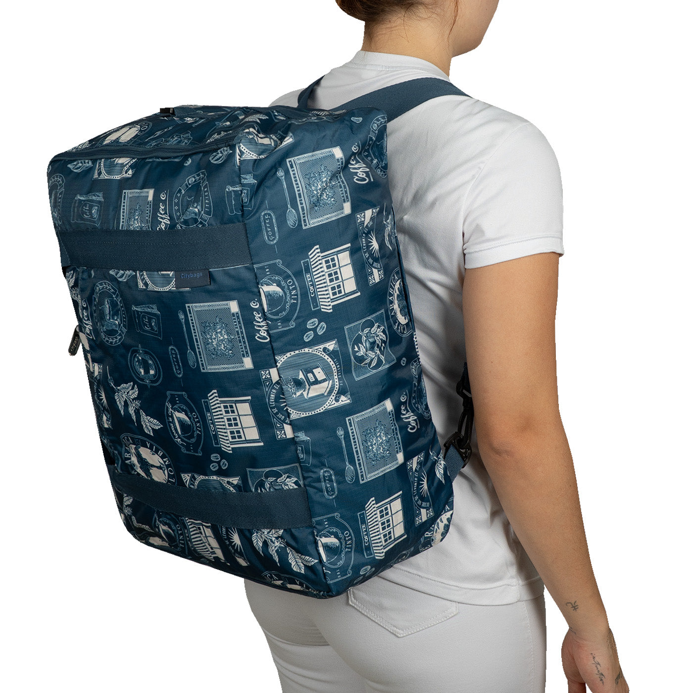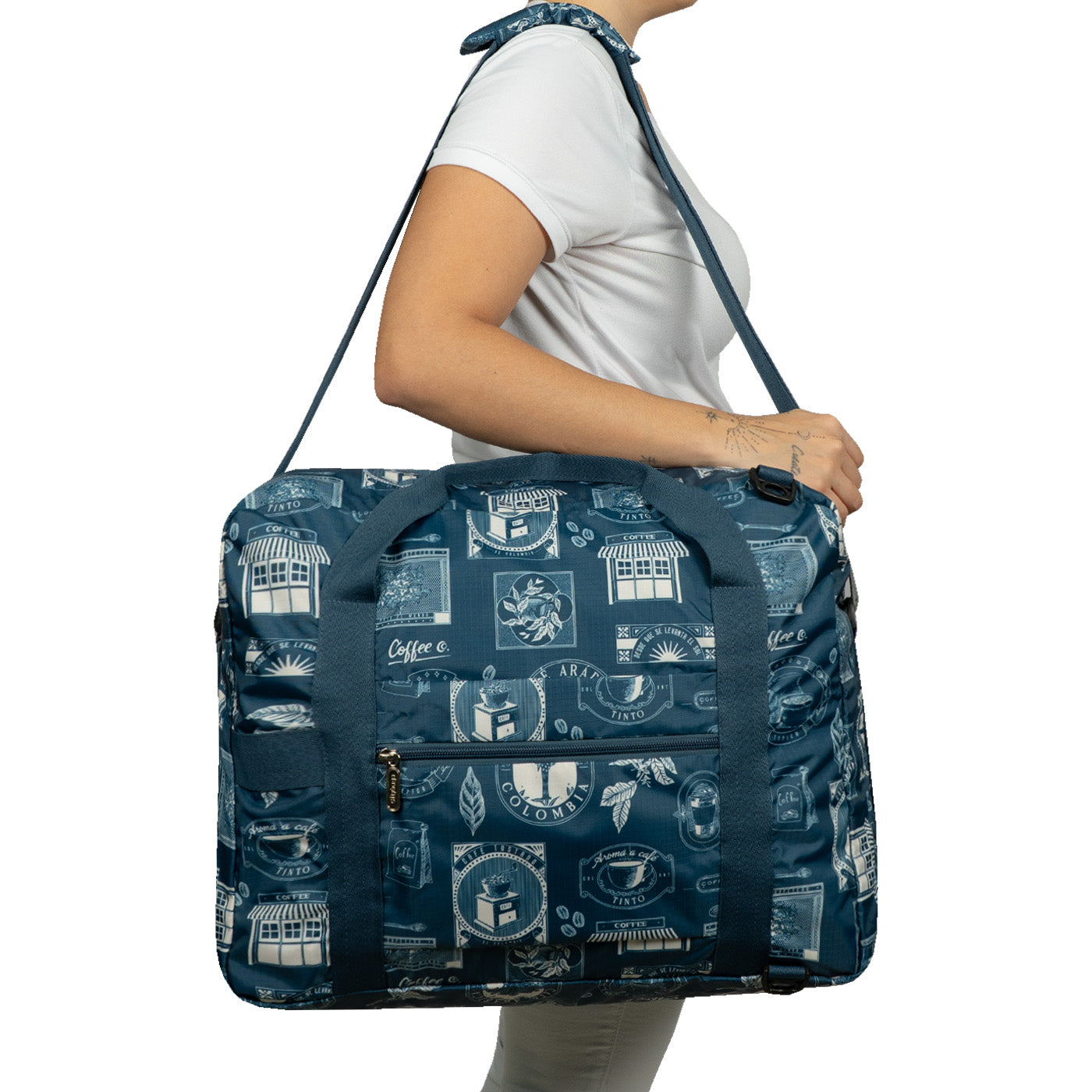 Con medidas abierta de 43cm x 35cm x 19cm tiene una capacidad de 28 litros y es fácil de doblar y guardar. Puedes colocarla en tu maleta de ruedas o llevarla al hombro. Úsala como equipaje de mano o como artículo personal en las aerolíneas low cost.
