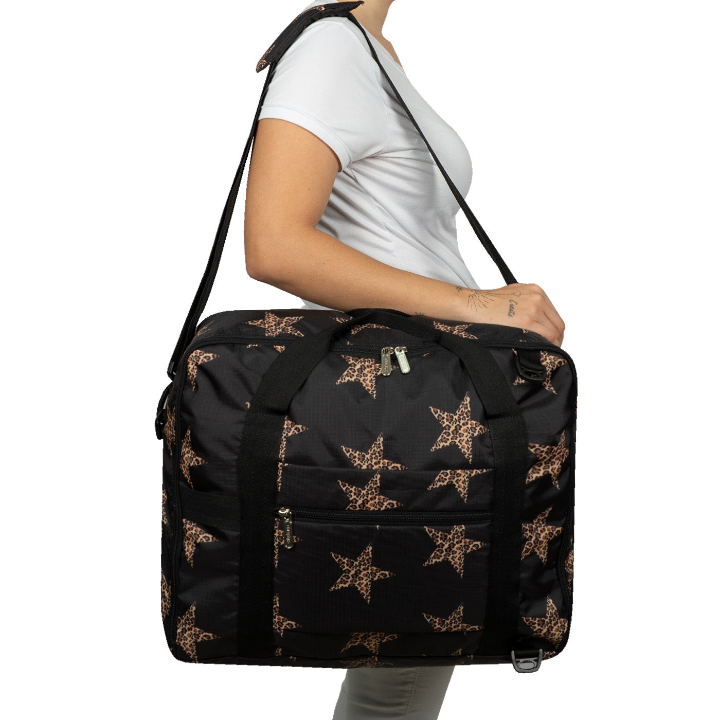 Con medidas abierta de 43cm x 35cm x 19cm tiene una capacidad de 28 litros y es fácil de doblar y guardar. Puedes colocarla en tu maleta de ruedas o llevarla al hombro. Úsala como equipaje de mano o como artículo personal en las aerolíneas low cost.