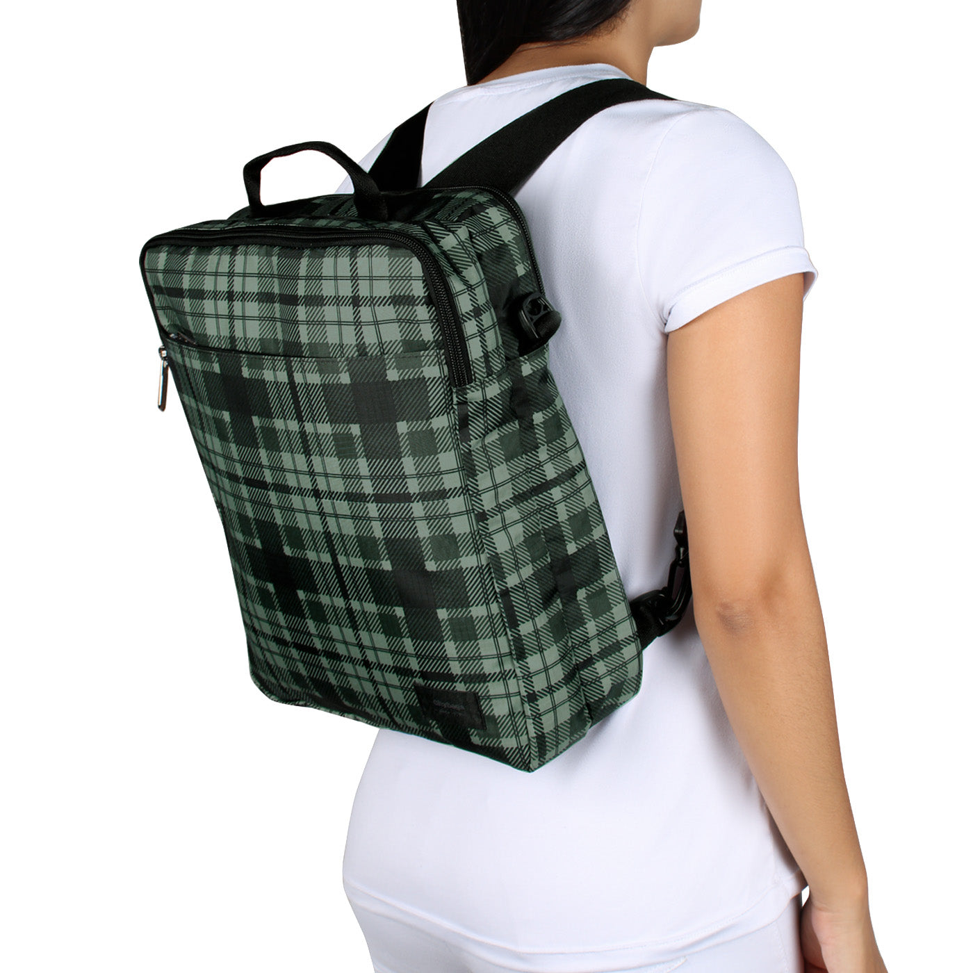 Bolso manos libres convertible a morral, bolso práctico y funcional, cuenta con 2 compartimientos amplios, uno de estos con bolsillo para laptop 17", adicional tiene 2 bolsillos externos y uno interno todos con cremallera y correa graduable al hombro.