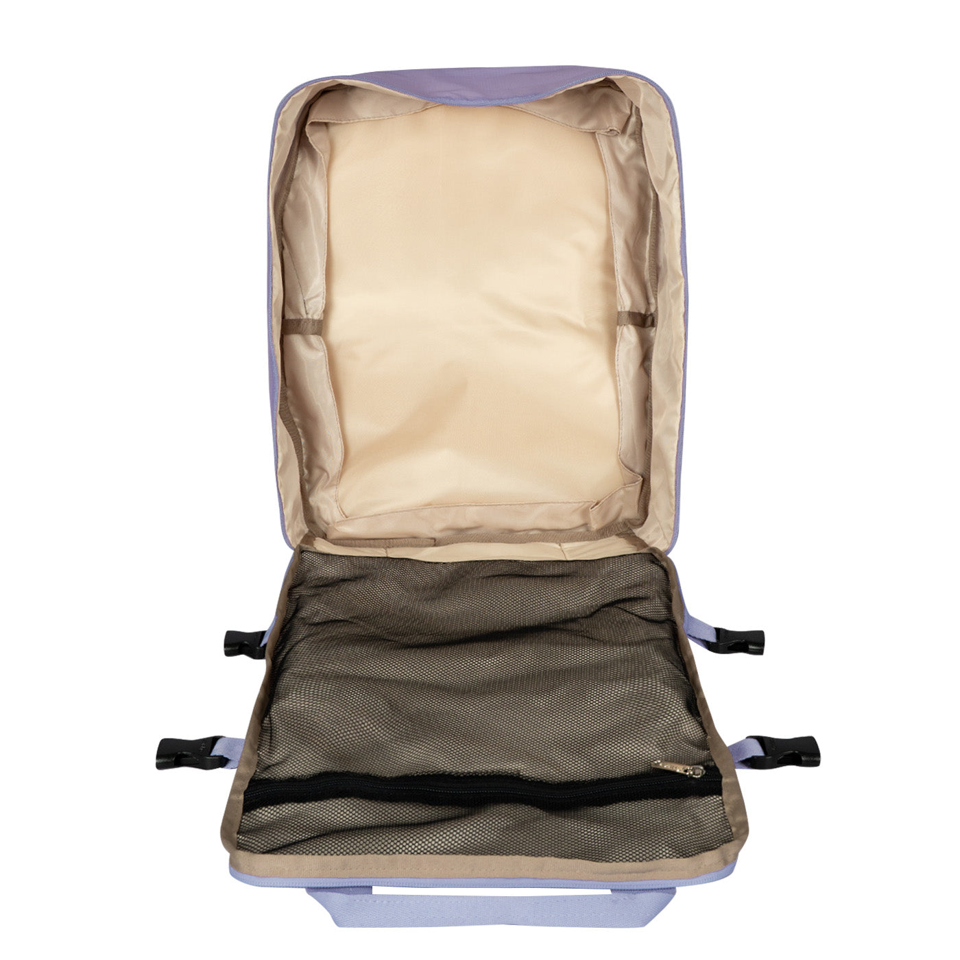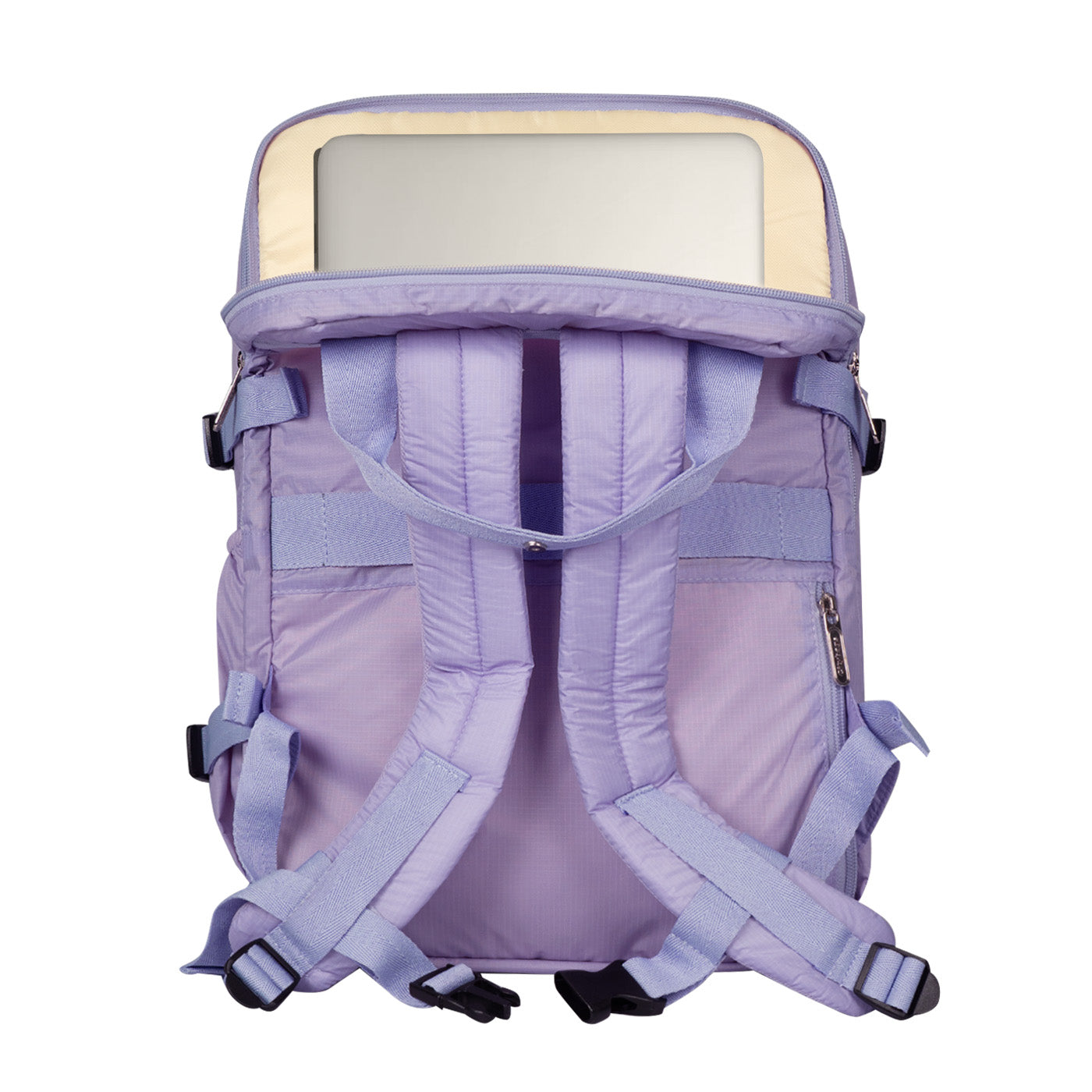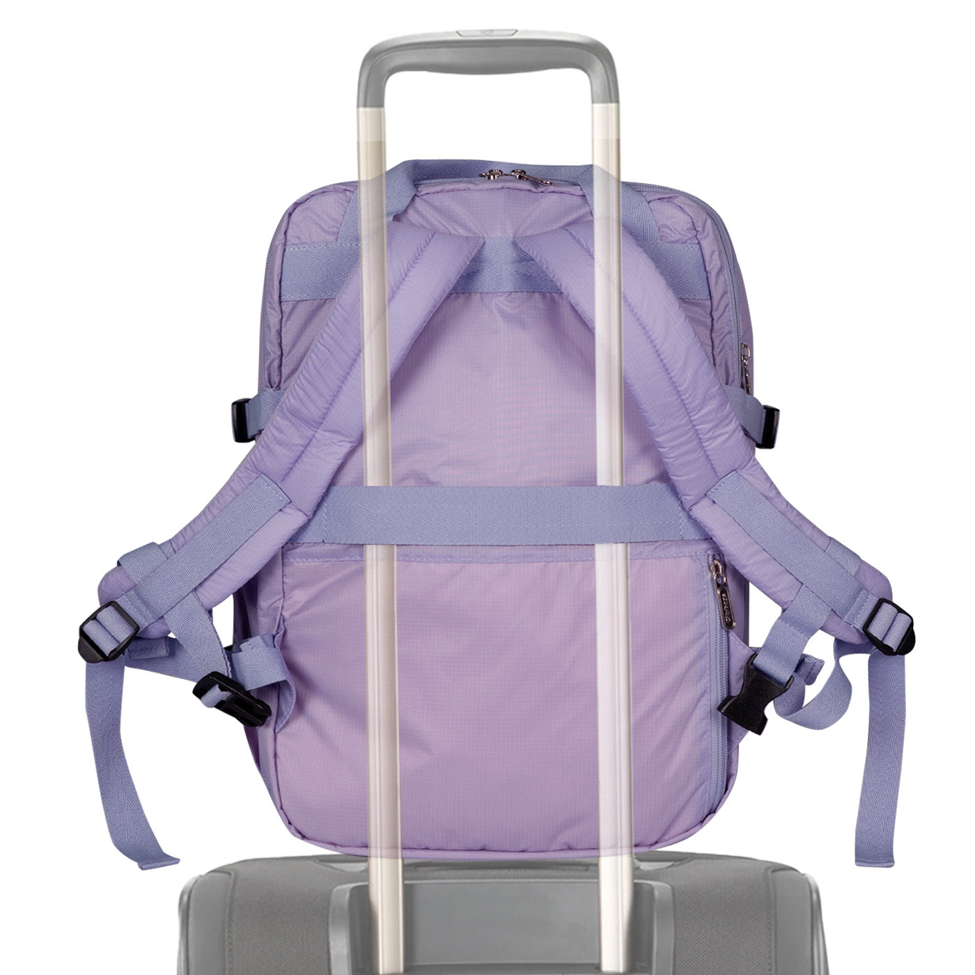 Ergonomía y confort: Cargaderas acolchadas y ajustables, espaldar con espuma para mayor comodidad, y correa trasera para sujetar al carry-on.