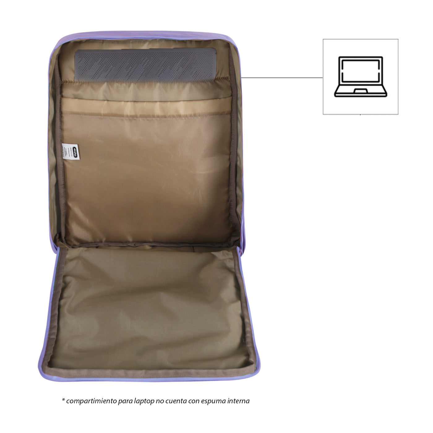 Diseño funcional: El morral cuenta con un compartimiento principal con doble deslizador y apertura en U, que permite un fácil acceso a tus pertenencias. Además, tiene múltiples bolsillos, incluyendo uno frontal con cremallera, un lateral para tu termo y un bolsillo trasero con cremallera para laptop de hasta 15".