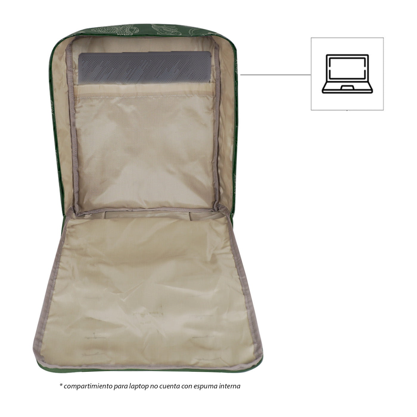 Diseño funcional: El morral cuenta con un compartimiento principal con doble deslizador y apertura en U, que permite un fácil acceso a tus pertenencias. Además, tiene múltiples bolsillos, incluyendo uno frontal con cremallera, un lateral para tu termo y un bolsillo trasero con cremallera para laptop de hasta 15".