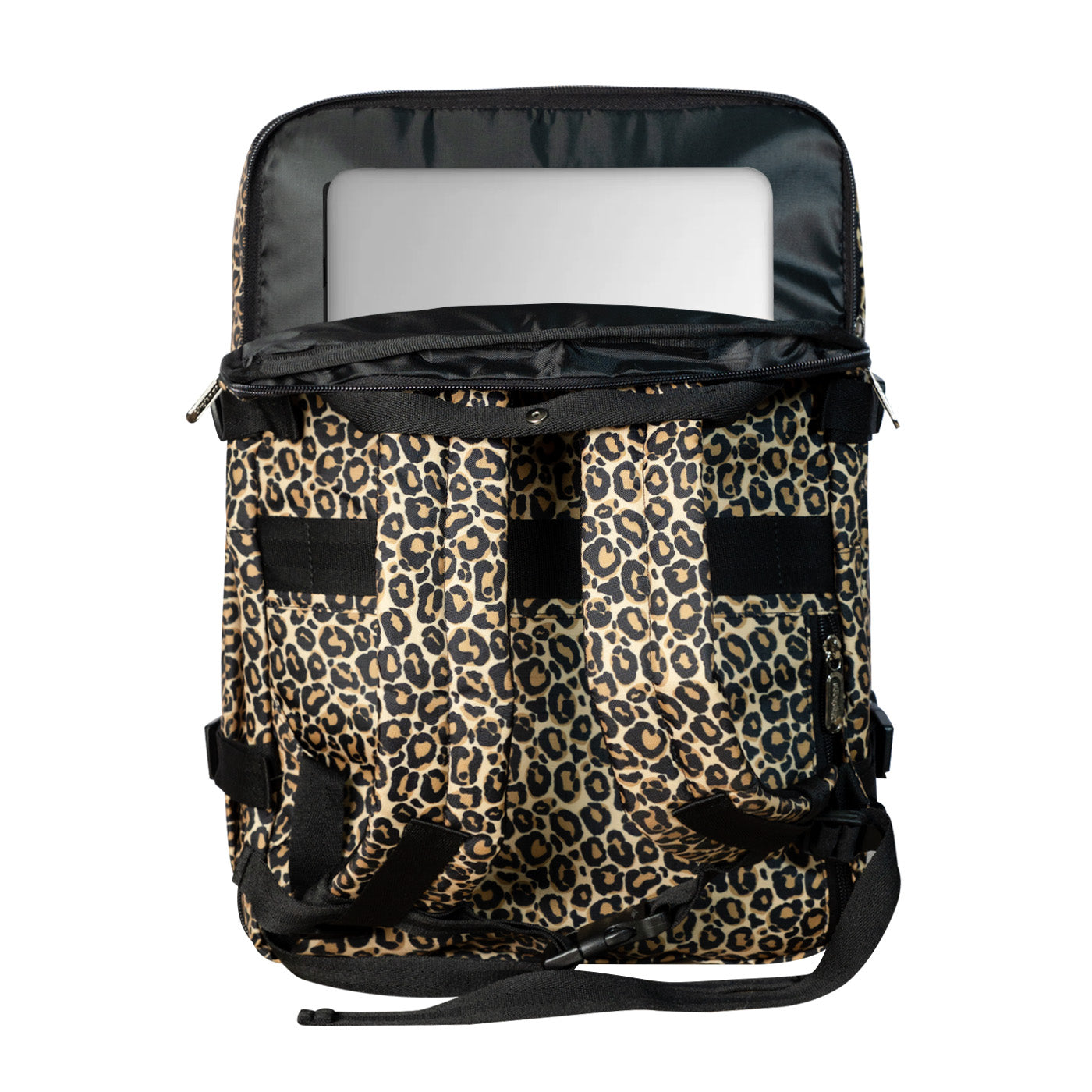 Ergonomía y confort: Cargaderas acolchadas y ajustables, espaldar con espuma para mayor comodidad, y correa trasera para sujetar al carry-on.