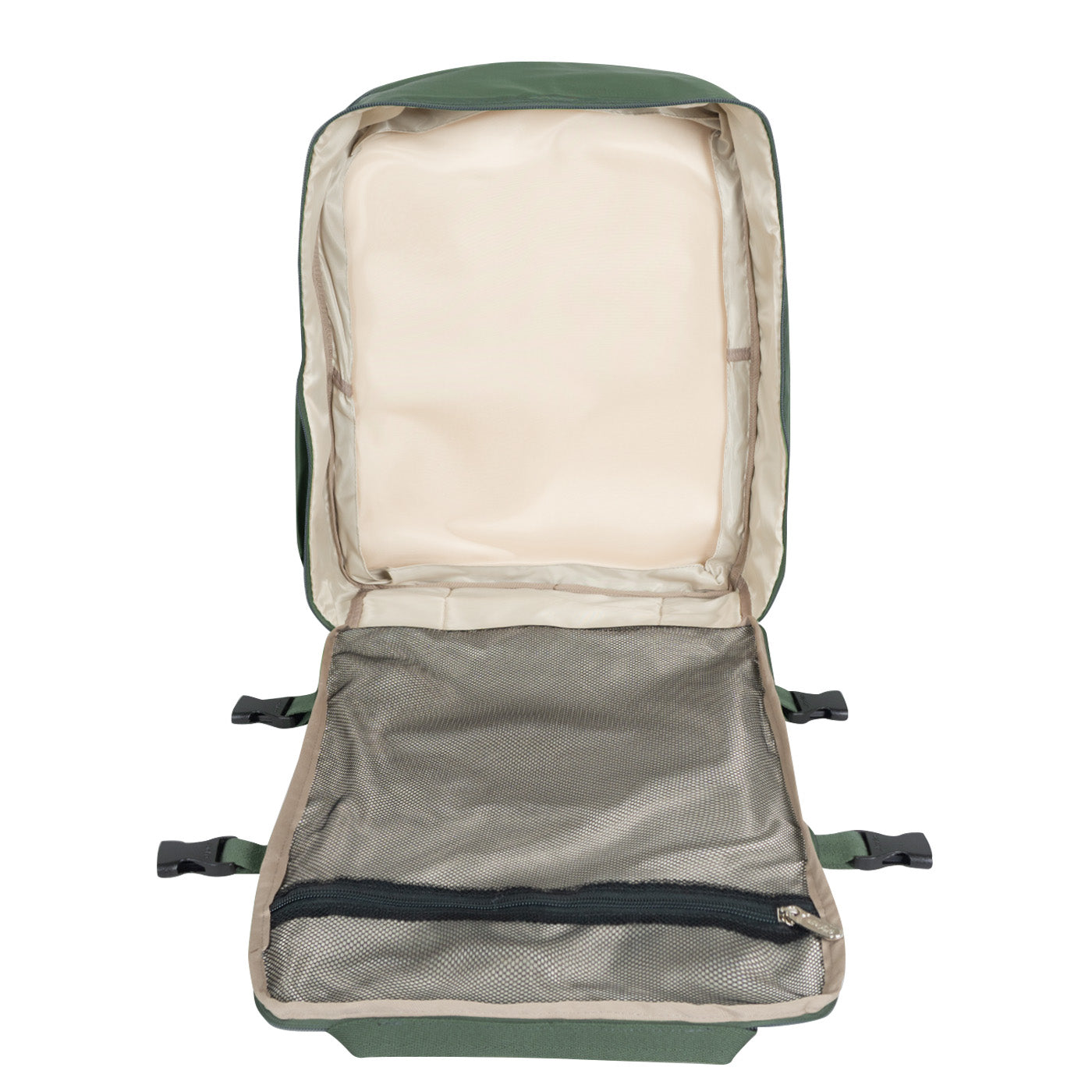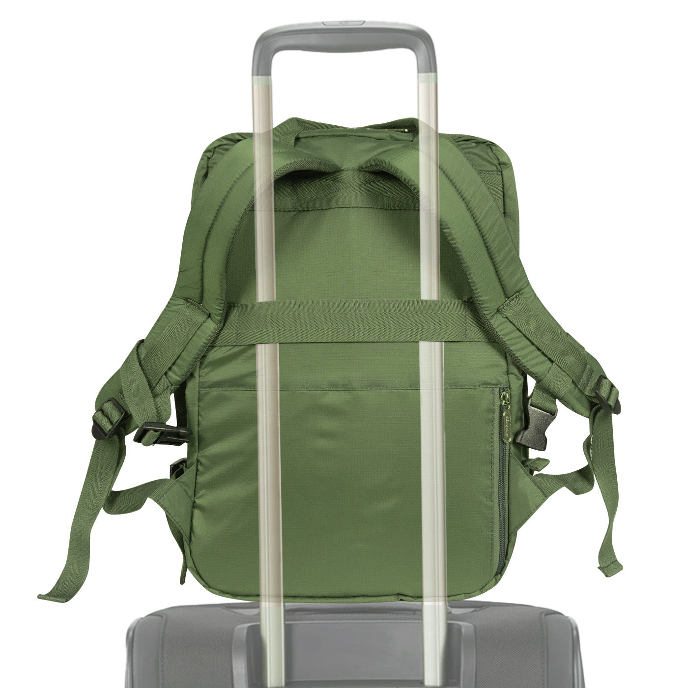 Ergonomía y confort: Cargaderas acolchadas y ajustables, espaldar con espuma para mayor comodidad, y correa trasera para sujetar al carry-on.