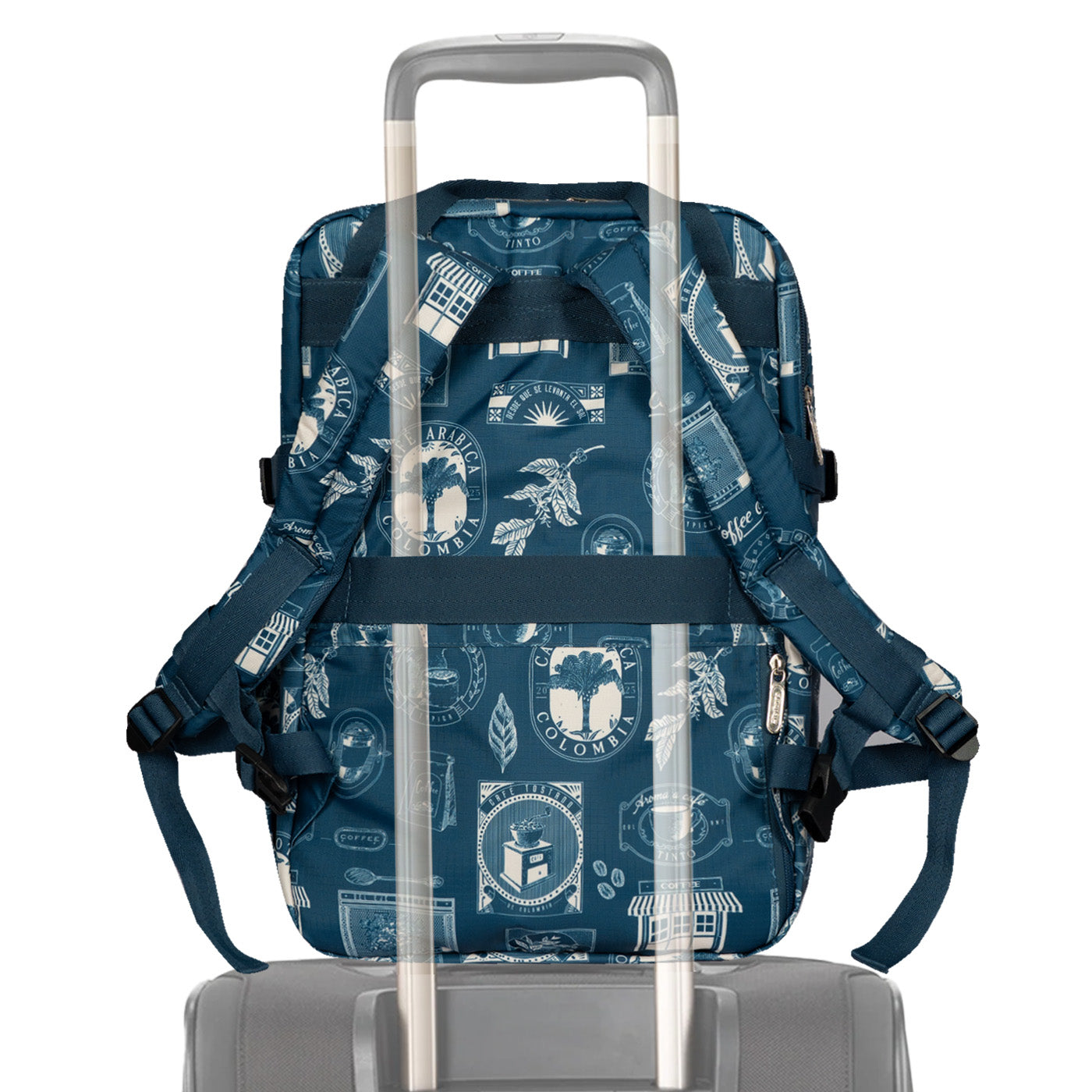 Ergonomía y confort: Cargaderas acolchadas y ajustables, espaldar con espuma para mayor comodidad, y correa trasera para sujetar al carry-on.