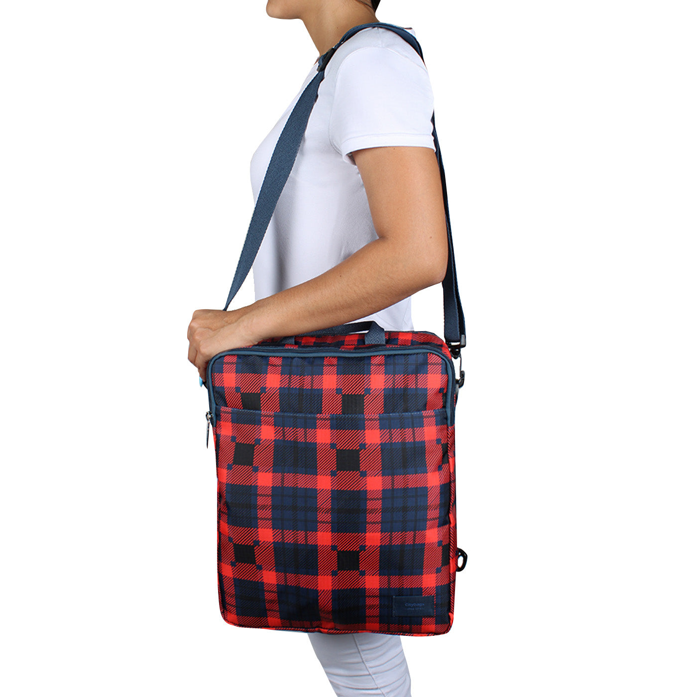 Bolso manos libres convertible a morral, bolso práctico y funcional, cuenta con 2 compartimientos amplios, uno de estos con bolsillo para laptop 17", adicional tiene 2 bolsillos externos y uno interno todos con cremallera y correa graduable al hombro.