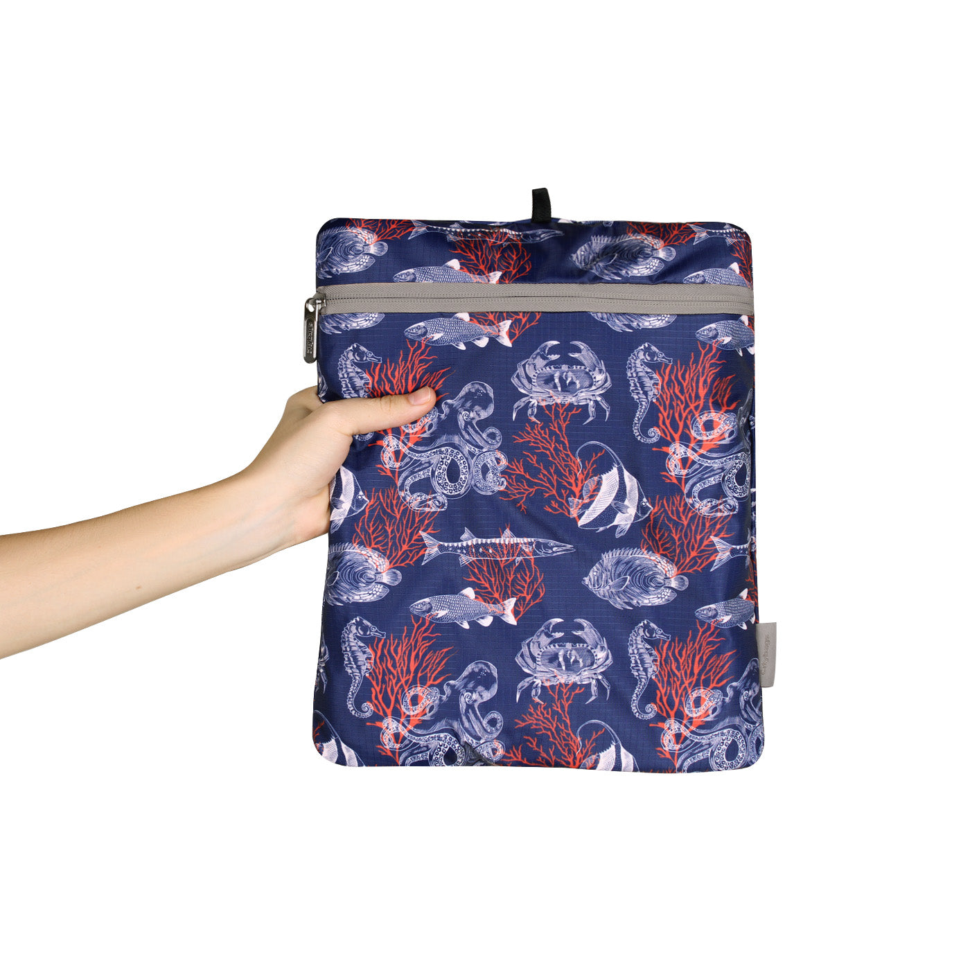 Esta elaborado con tela de paracaídas, lo que lo hace liviano y resistente a la suciedad y la humedad.