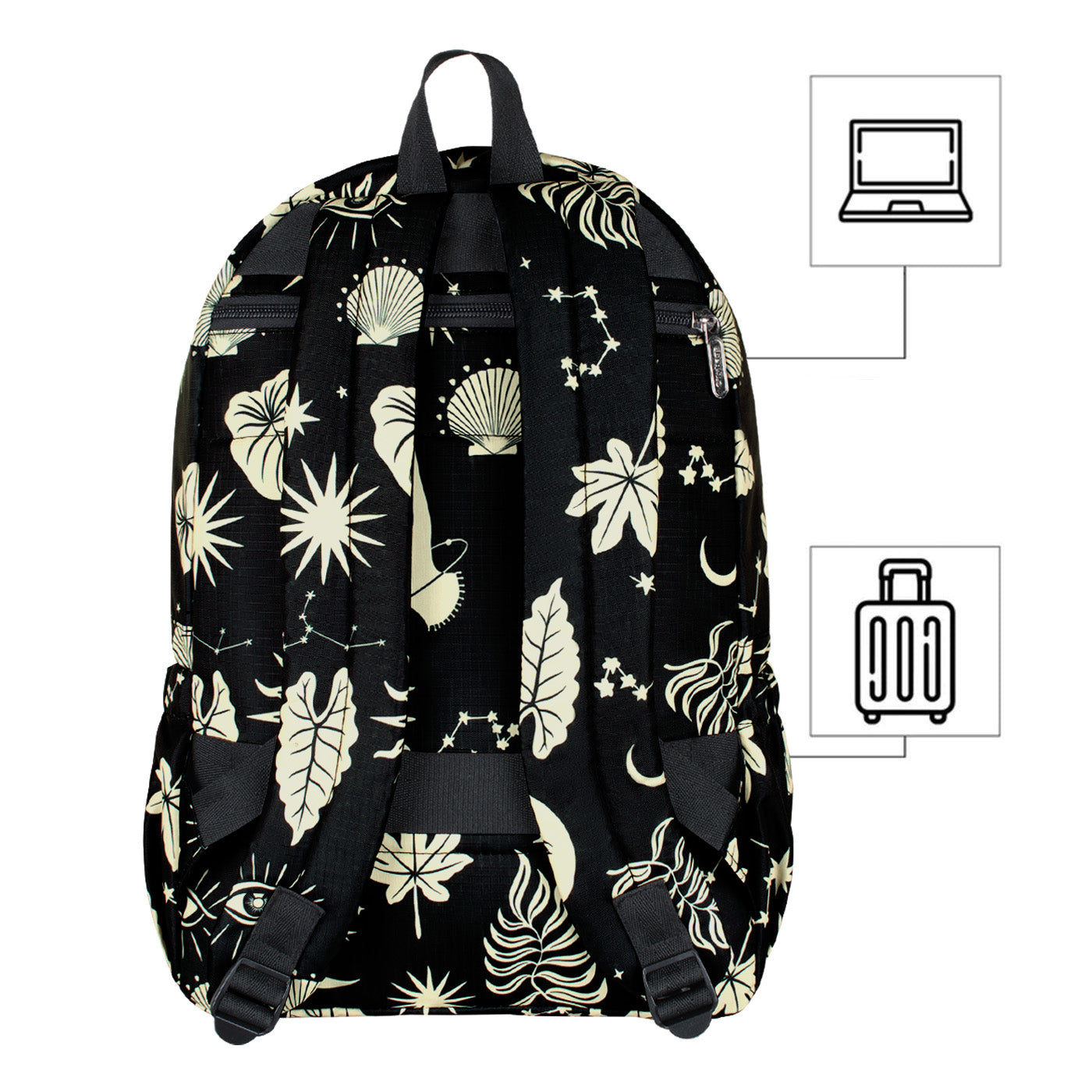 Este morral cuenta con bolsillo trasero recubierto en espuma para proteger tu laptop hasta de 14", un bolsillo frontal con cremallera de gran capacidad, 2 bolsillos laterales con elástico, cargaderas con espuma y ergonómicas para mayor comodidad, correa de mano, y una correa trasera para llevar en la maleta de ruedas.