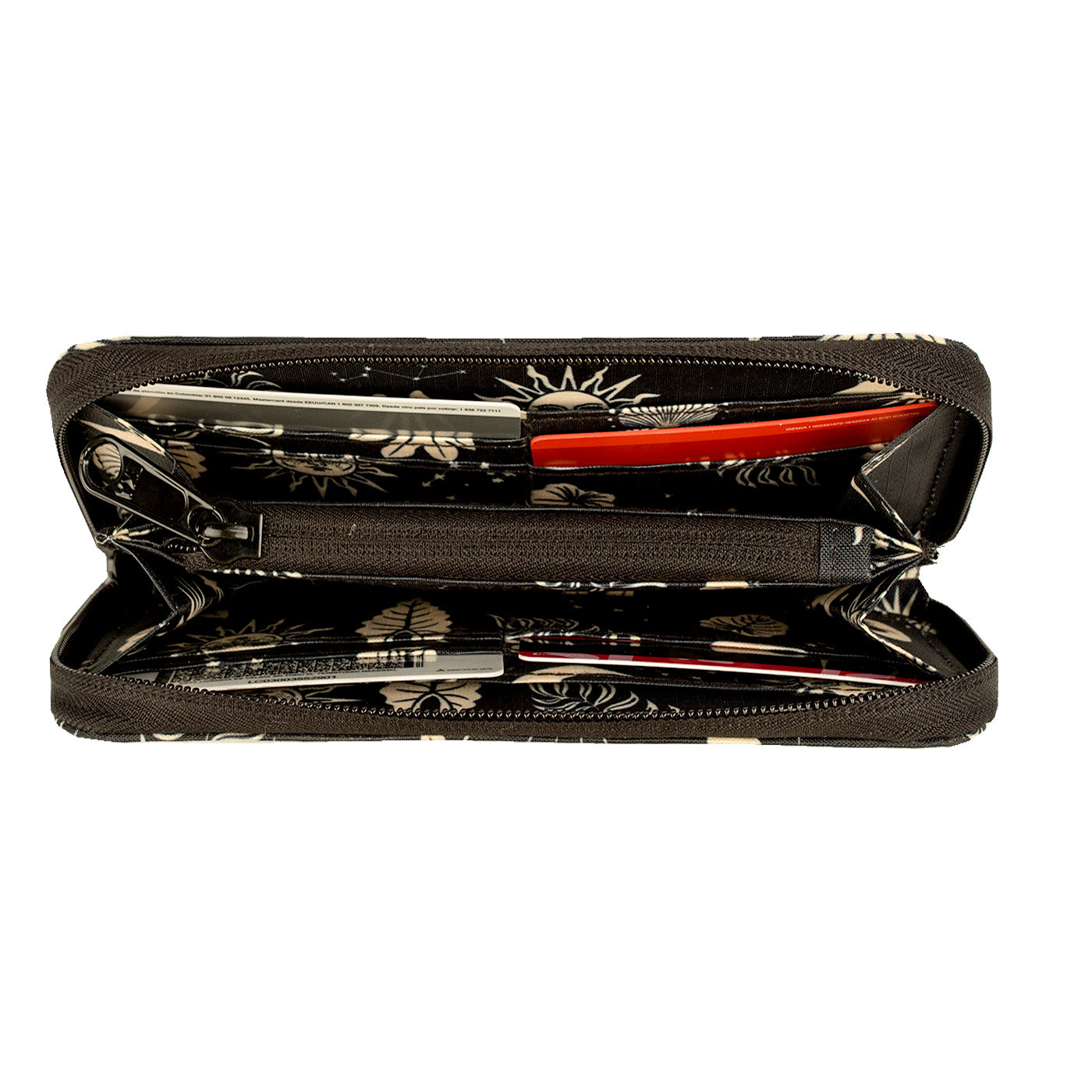 Billetera con cremallera y muchos bolsillos organizadores, para que lleves tus documentos con seguridad y estilo