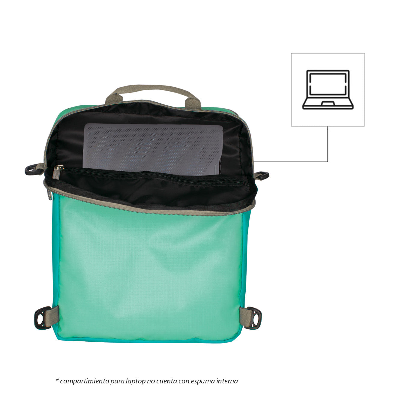 Bolso manos libres convertible a morral, bolso práctico y funcional, cuenta con 2 compartimientos amplios, uno de estos con bolsillo para laptop 17", adicional tiene 2 bolsillos externos y uno interno todos con cremallera y correa graduable al hombro.
