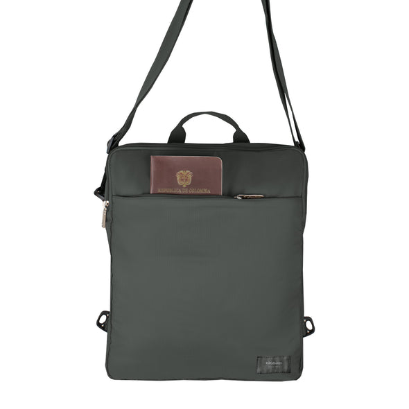 Bolso manos libres convertible a morral, bolso práctico y funcional, cuenta con 2 compartimientos amplios, uno de estos con bolsillo para laptop 17", adicional tiene 2 bolsillos externos y uno interno todos con cremallera y correa graduable al hombro.