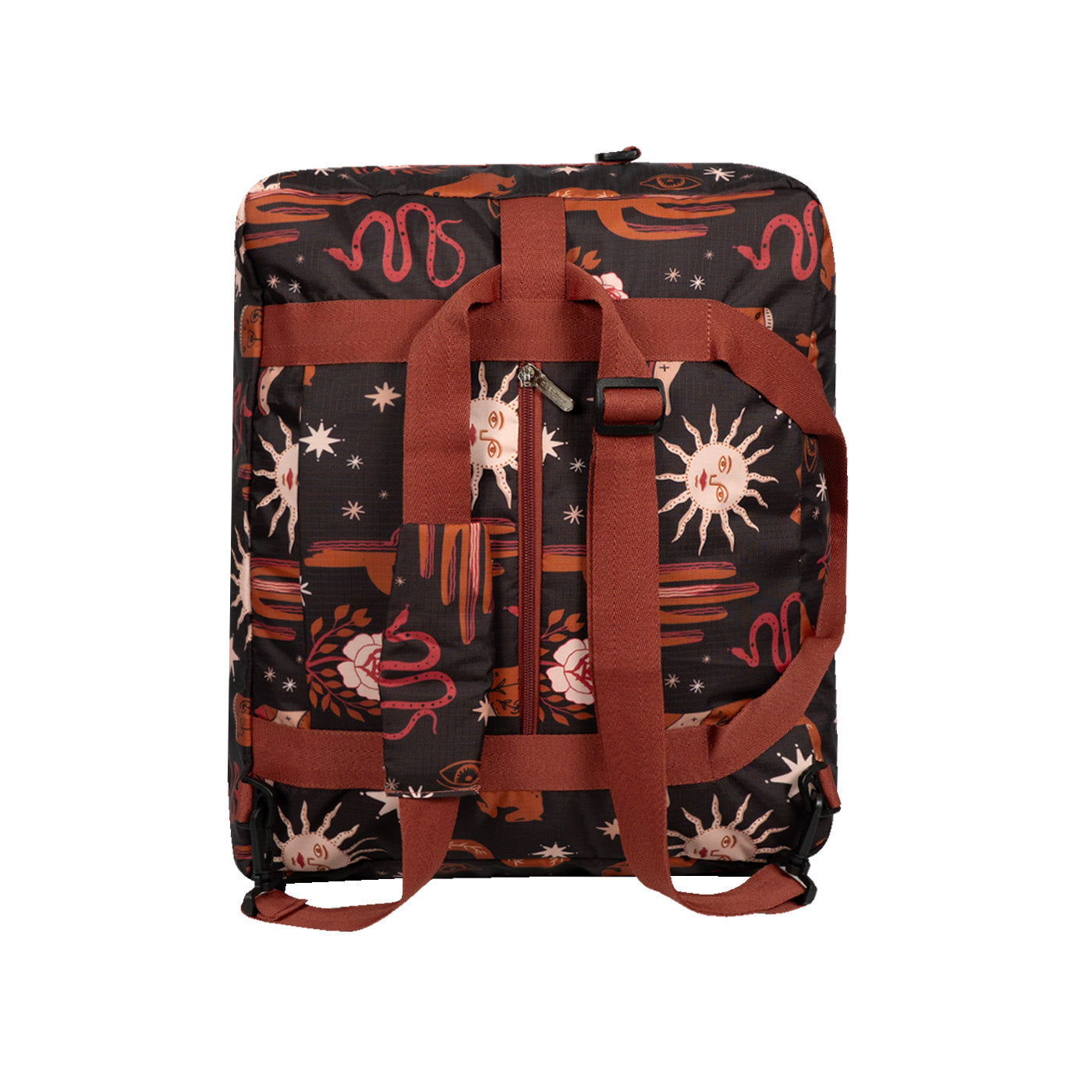 Con medidas abierta de 43cm x 35cm x 19cm tiene una capacidad de 28 litros y es fácil de doblar y guardar. Puedes colocarla en tu maleta de ruedas o llevarla al hombro. Úsala como equipaje de mano o como artículo personal en las aerolíneas low cost.