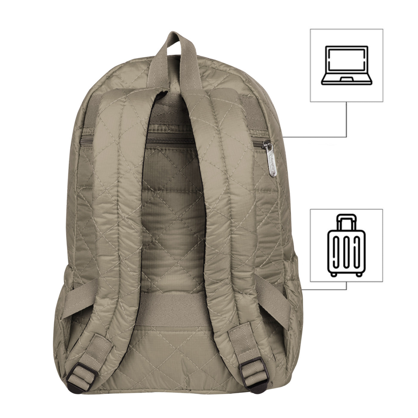 Este morral cuenta con bolsillo trasero recubierto en espuma para proteger tu laptop hasta de 14", un bolsillo frontal con cremallera de gran capacidad, 2 bolsillos laterales con elástico, cargaderas con espuma y ergonómicas para mayor comodidad, correa de mano, y una correa trasera para llevar en la maleta de ruedas.