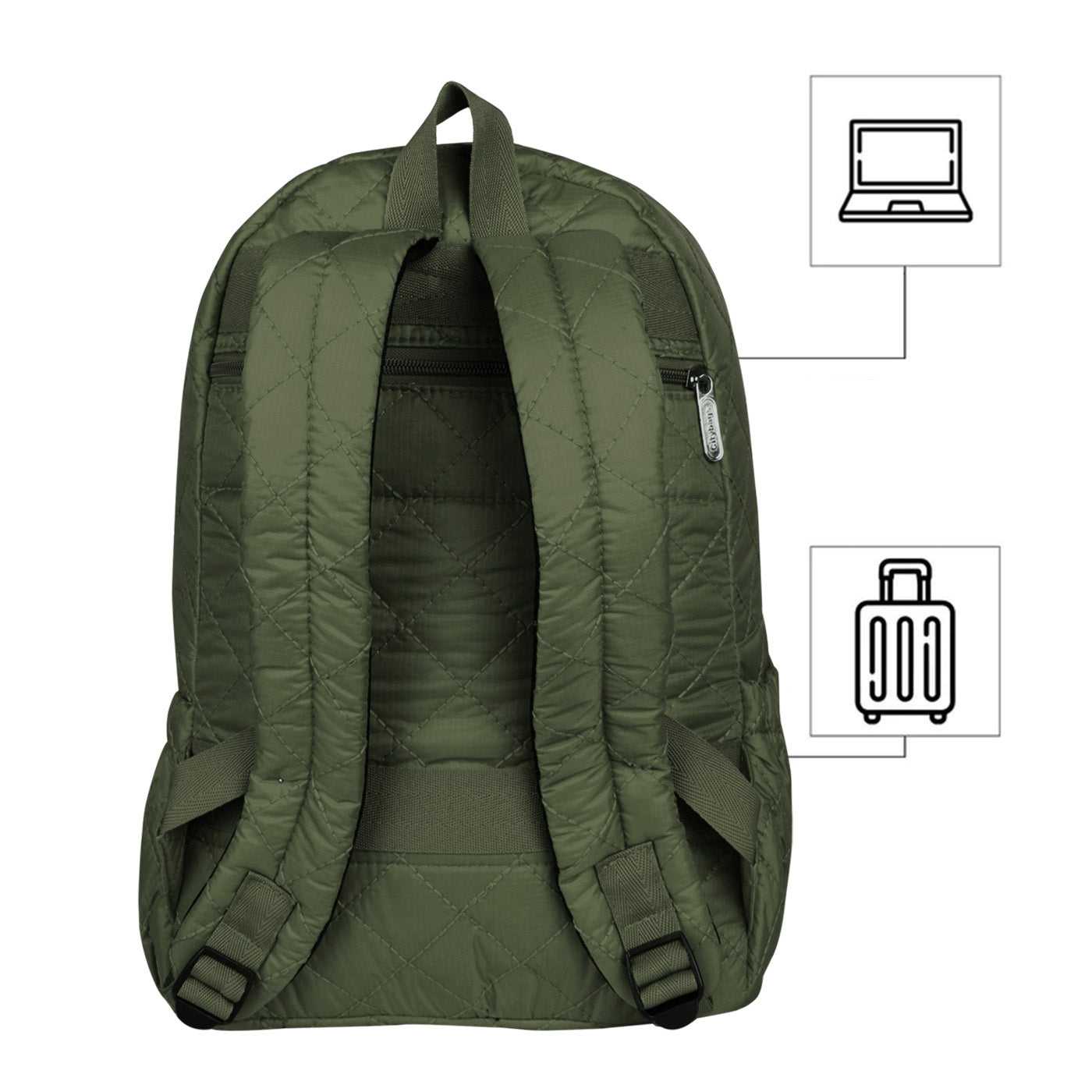 Este morral cuenta con bolsillo trasero recubierto en espuma para proteger tu laptop hasta de 14", un bolsillo frontal con cremallera de gran capacidad, 2 bolsillos laterales con elástico, cargaderas con espuma y ergonómicas para mayor comodidad, correa de mano, y una correa trasera para llevar en la maleta de ruedas.